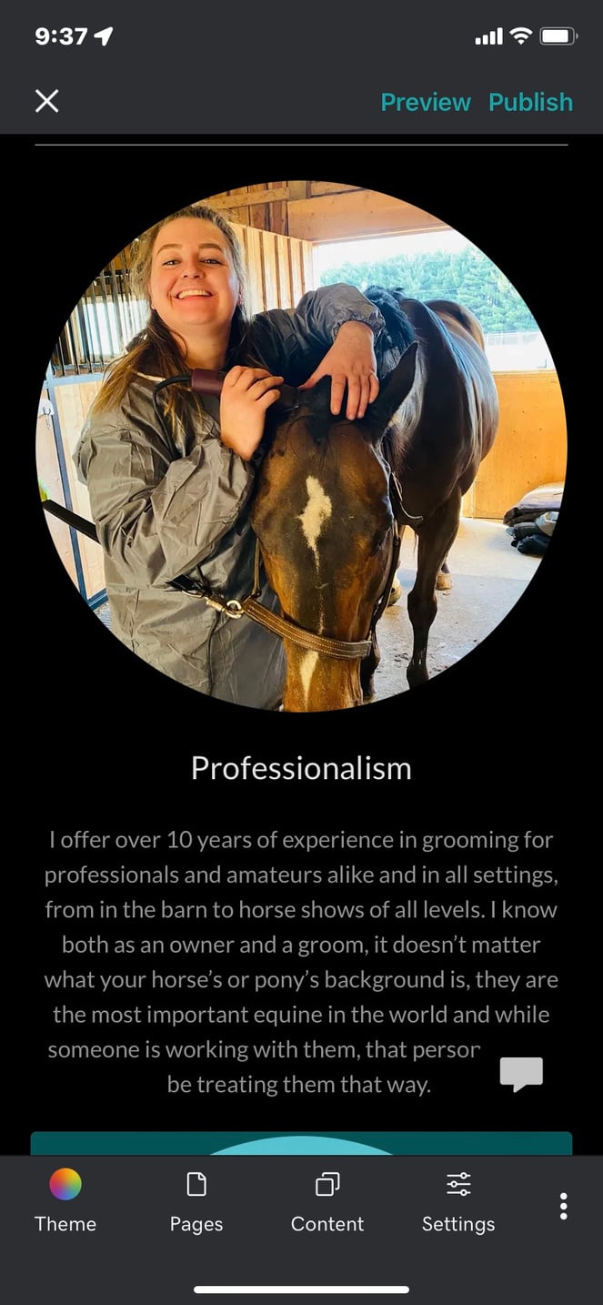 I specialize in hunters and jumpers, but am always open to expand into other disciplines not to mention serving pleasure horses in their grooming needs!